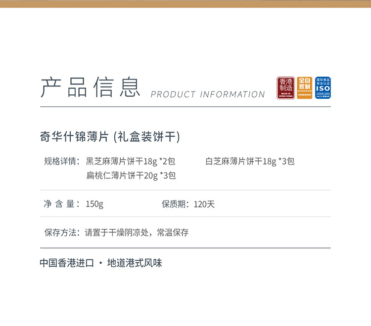 【什锦薄片礼盒】奇华饼家扁桃仁黑芝麻薄片什锦饼干礼盒中国香港进口饼干节日送礼