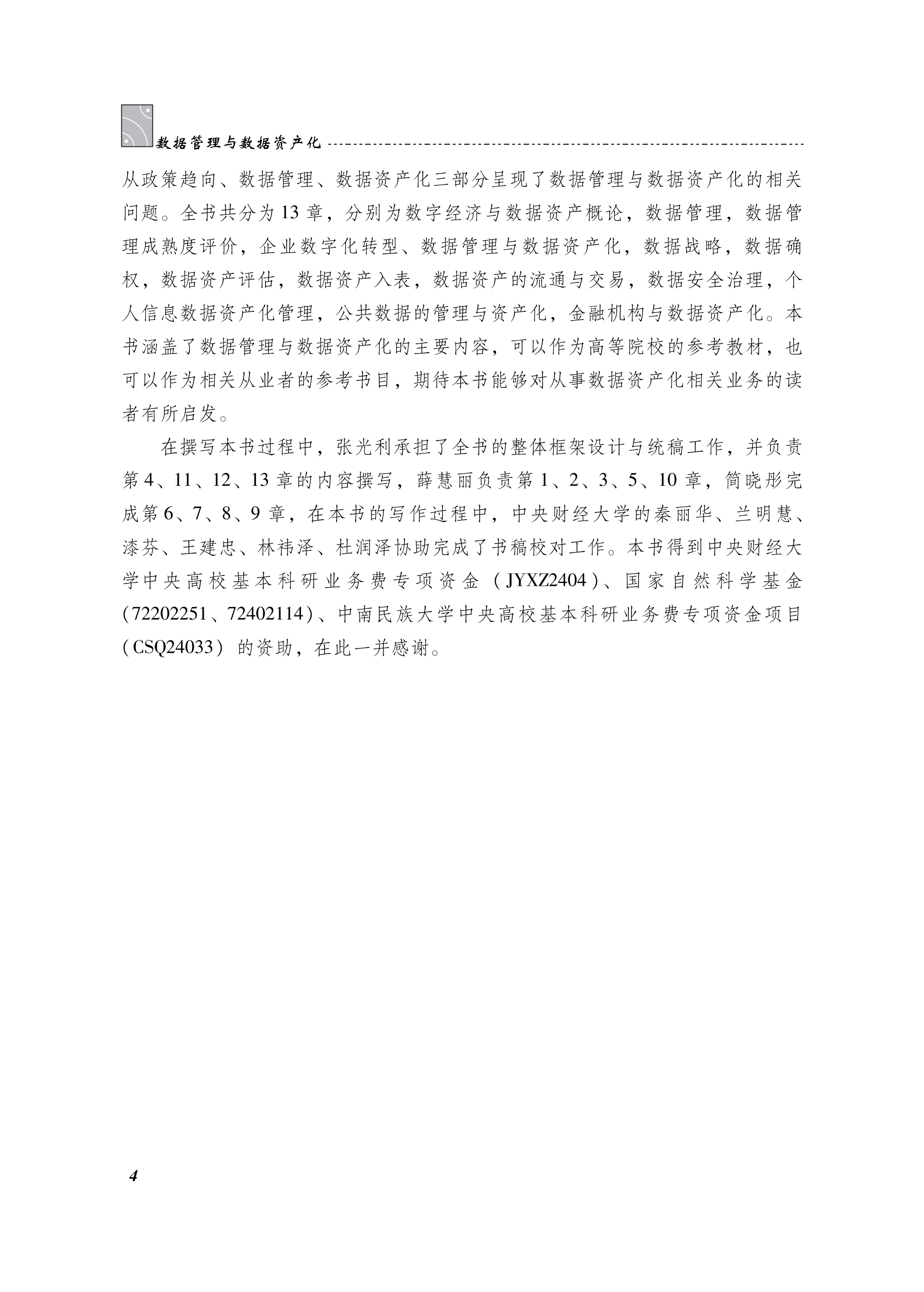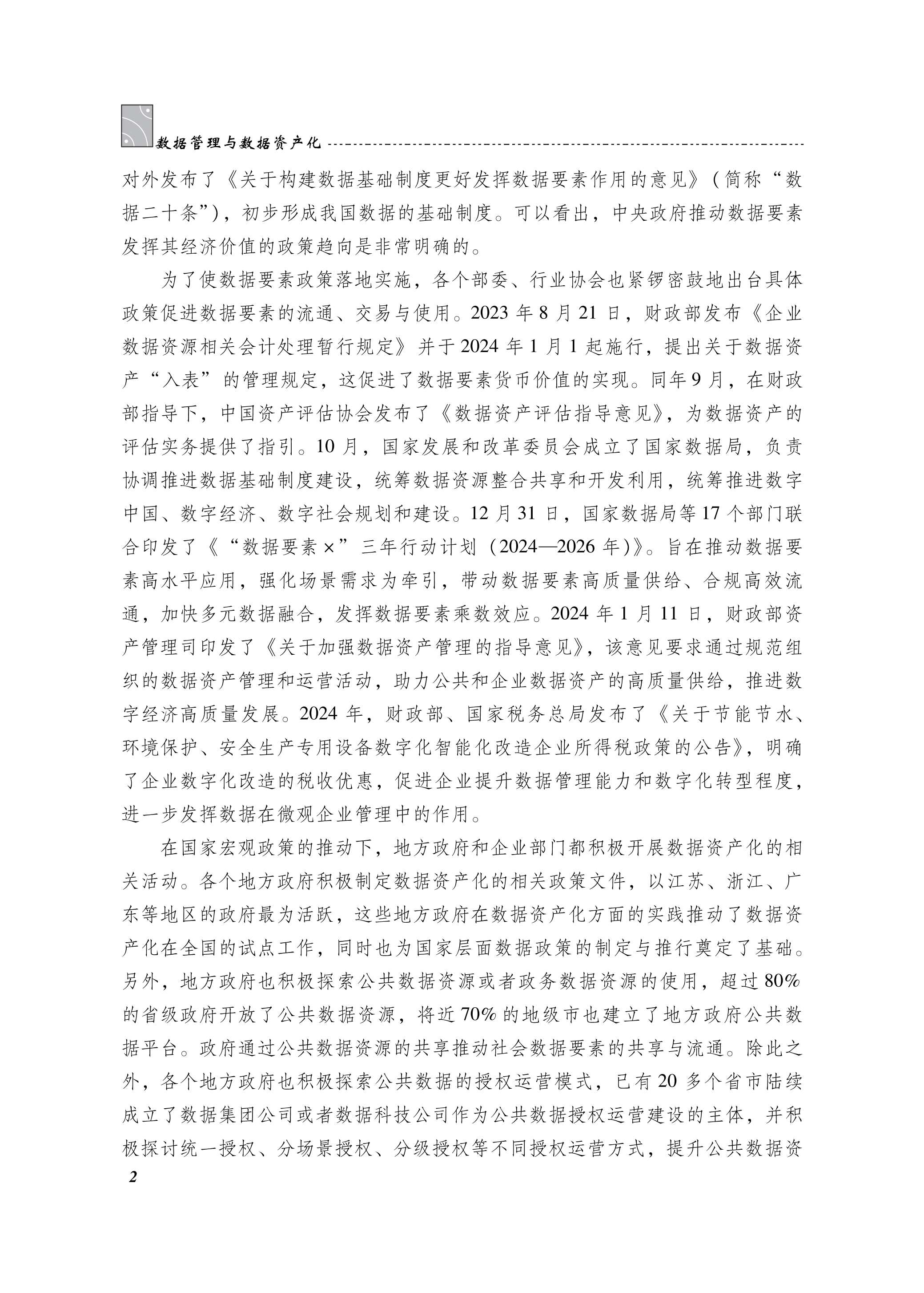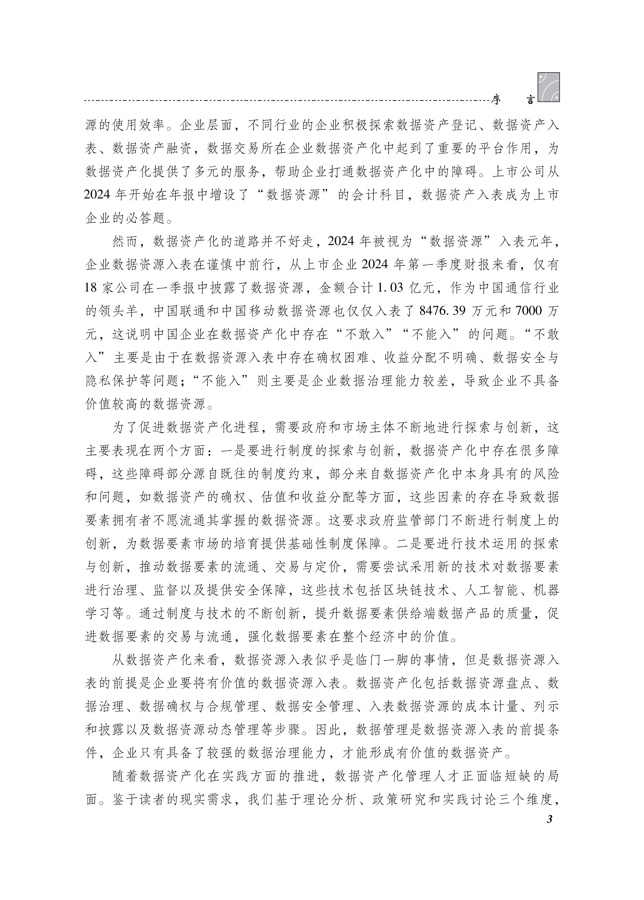 在数字经济时代下,数字资源如何转化为数字资产并有效支撑企业和宏观经济发展是当前理论界和实务界讨论的热点话题。随着《中共中央 国务院关于构建数据基础制度更好发挥数据要素作用的意见》《企业数据资源相关会计处理暂行规定》的相继颁布,数据资源转化为数据资产的节奏越来越快。中国作为数据经济时代的引领者,如何通过制度设计、市场协调以及企业主体的参与形成数据资产化的循环经济是当前促进数字经济发展的核心要素。本书将围绕着数据资产化的政策法规、数据资产化的法律法规、数据资产交易机制设计、企业数据治理能力以及数据资产入表和信息披露作为主要内容,详细讨论企业数据资产化的实现路径。