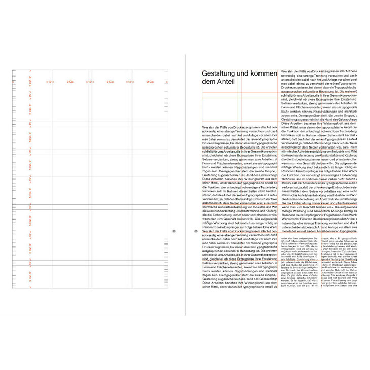《平面设计中的网格系统》开篇介绍了网格系统的理论基础及其宗旨,之后则是搭建网格系统的详细步骤。在讨论了纸张的尺寸、字体的选择、分栏的宽窄、行距、页边距和页码之后,布鲁克曼更进一步阐述了网格系统的诸多细节要素。
