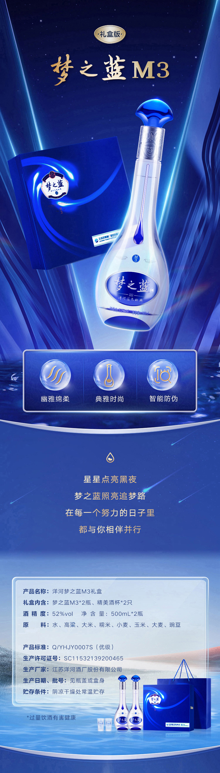 洋河 梦之蓝M3礼盒 52度 500mL 浓香型白酒