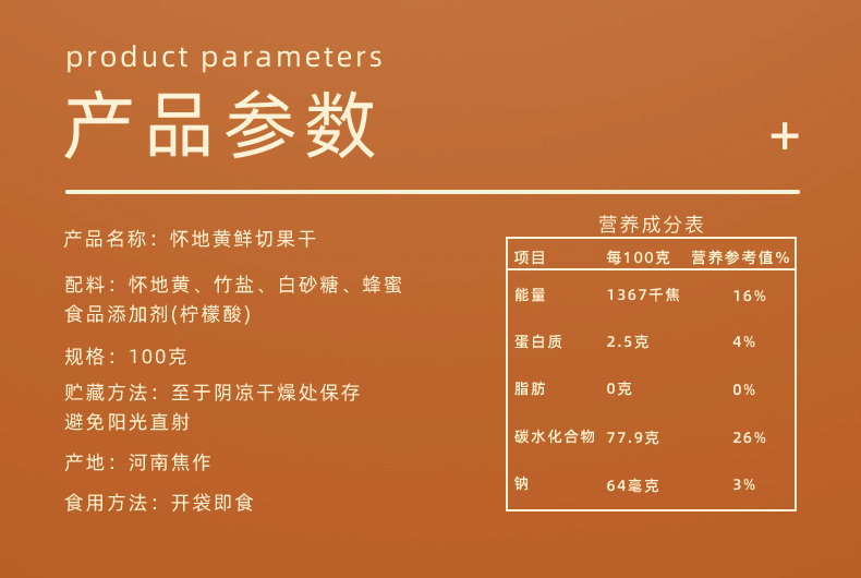 【品名】【超值5袋装】怀豫坊 怀地黄鲜切果干 酸甜可口 100g*5袋 【规格】100g*5袋 【产地】国内 【保质期】12个月 【发货包装】独立包装 【发货地】河南 【发货快递】中通、极兔、申通随机发 【不发货区域】新疆、西藏、港澳台 【补邮费地区】北京、上海、黑龙江、贵州、云南、甘肃、宁夏、内蒙、青海、海南+1.5元/单 【发货时效】48-72小时,周末节假日顺延 |