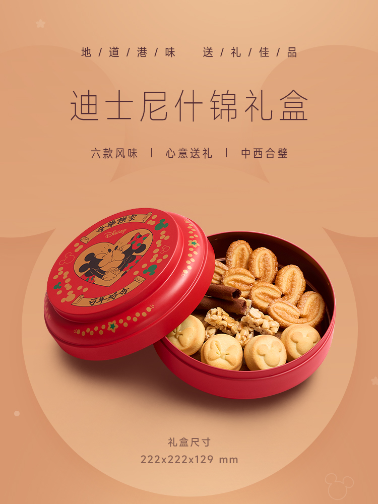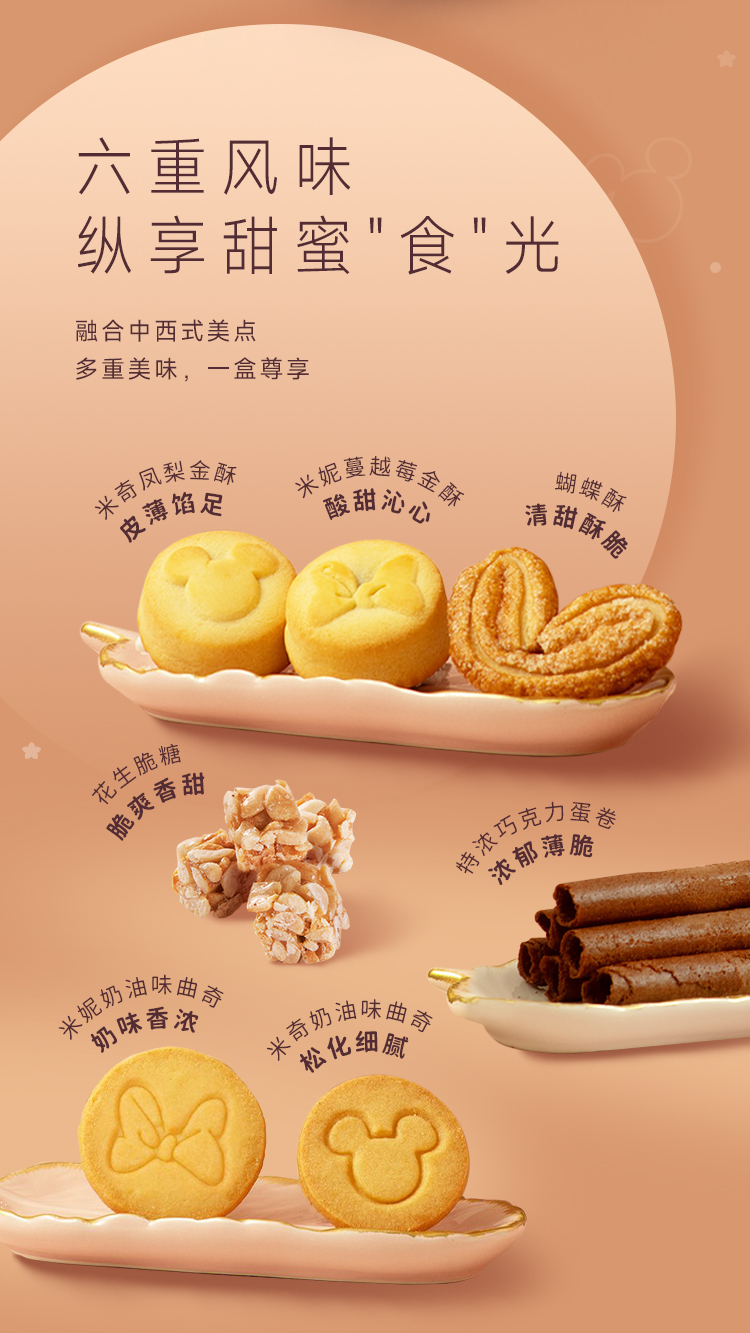 【奇华迪士尼米奇米妮什锦小食礼盒】蝴蝶酥/花生脆糖/特浓巧克力味蛋卷/奶油味曲奇饼干/凤梨金酥/蔓越莓金酥