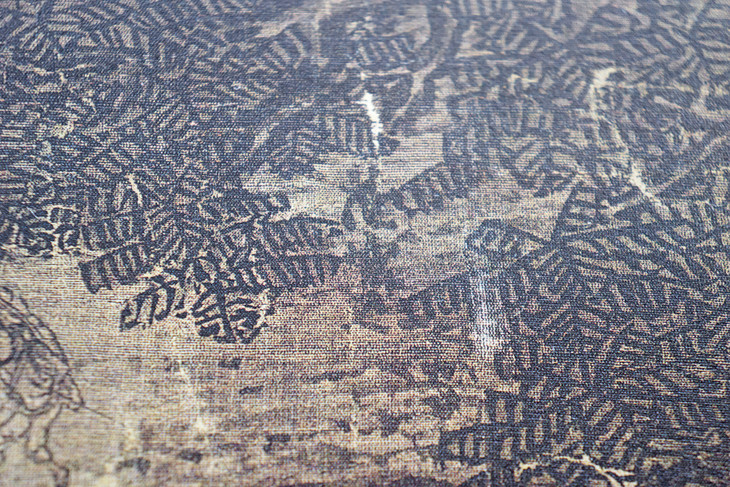 北宋初年,《溪山行旅图》为“巨碑式”山水树立了最佳典范。此画在近、中、远三段式的基本构图中,巧妙地藉助推远主山、拉近中景、突显近景渺小行旅与主山巍峨崇高的对比等手法,缔造出一种如临真境的壮伟意象。幅右下角树隙间,暗藏有“范宽”二字签款。