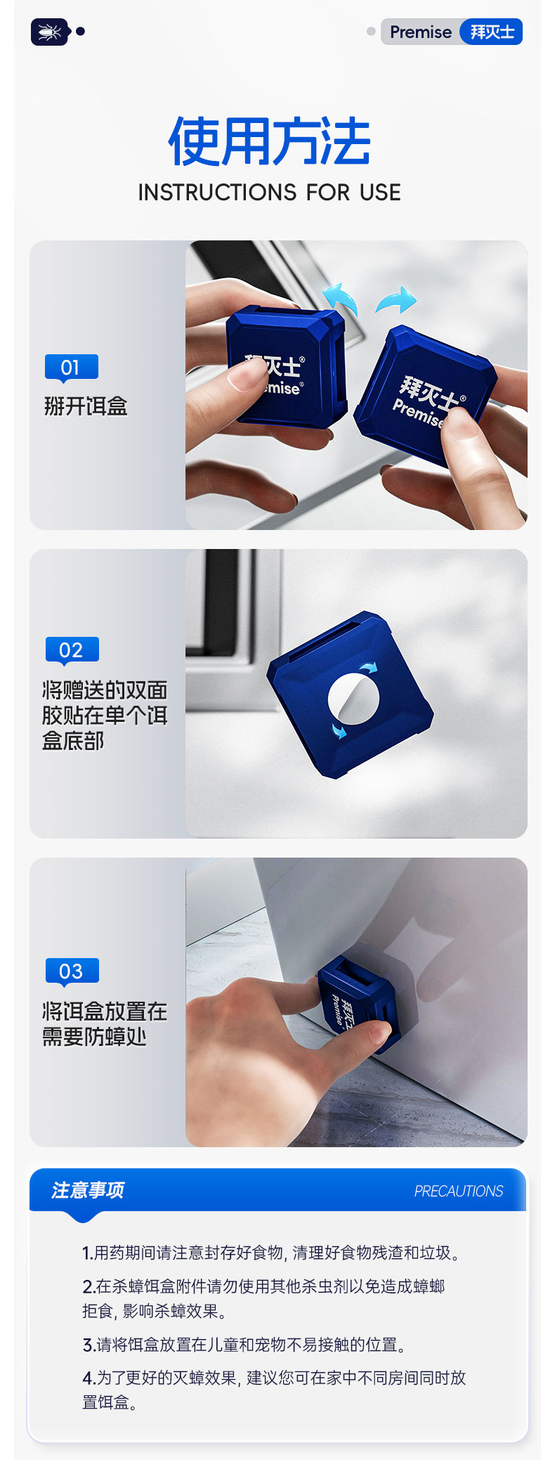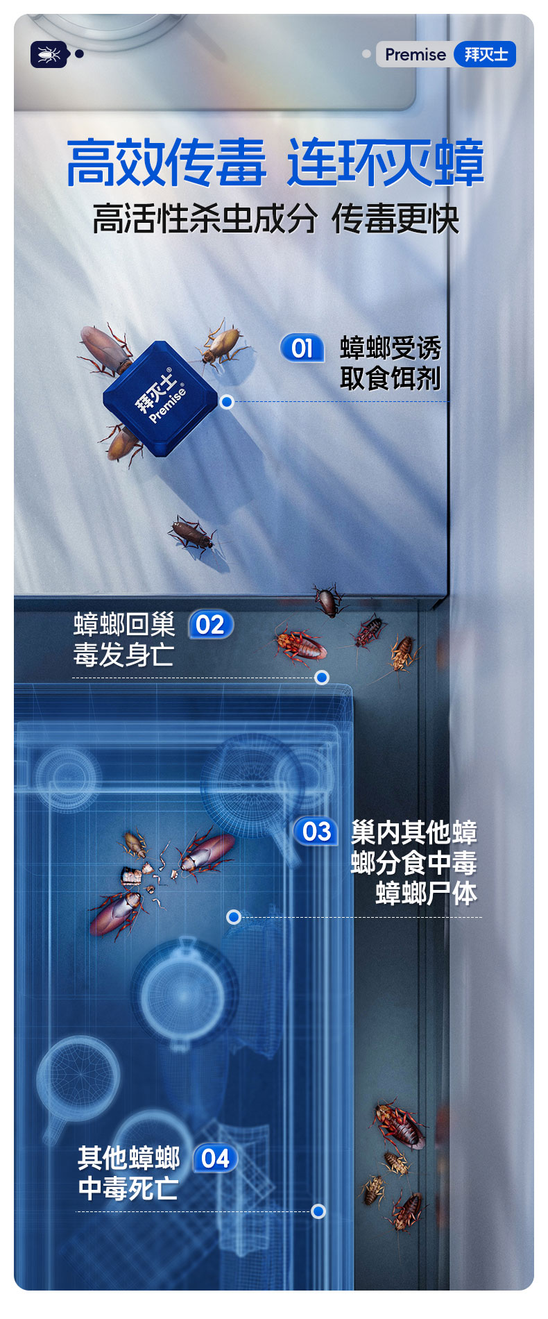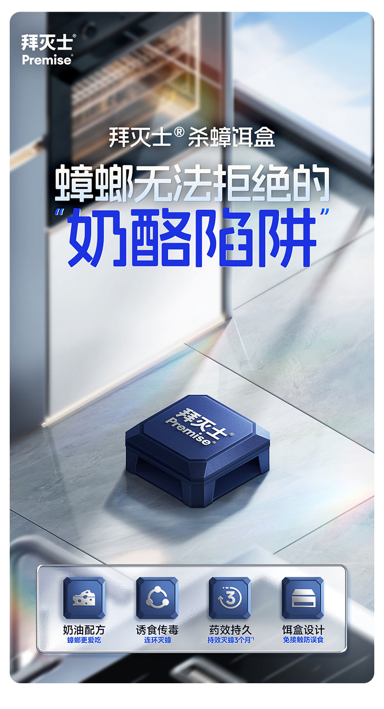 热卖!蟑螂就怕它!德国拜耳拜灭士 杀蟑饵剂盒 药效持久 无毒无异味不刺激 孩宠家庭推荐 防开启不误食 2.2g*4个/盒