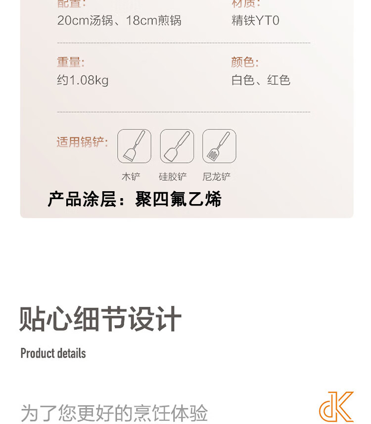 【品名】【超值2件套】德国锅具品牌 DESLON 锅组套装 煎/煮/炖 20cm汤锅/18cm锅 【规格】白色(汤锅+锅)、红色(汤锅+锅) 【尺寸】20cm汤锅,18cm锅 【产地】国内 【材质】精铁YT0 【发货包装】独立包装盒 【发货地】浙江 【发货快递】中通 【不发货区域】港澳台 新疆,西藏,内蒙古 【发货时效】48-72小时,周末节假日顺延 |