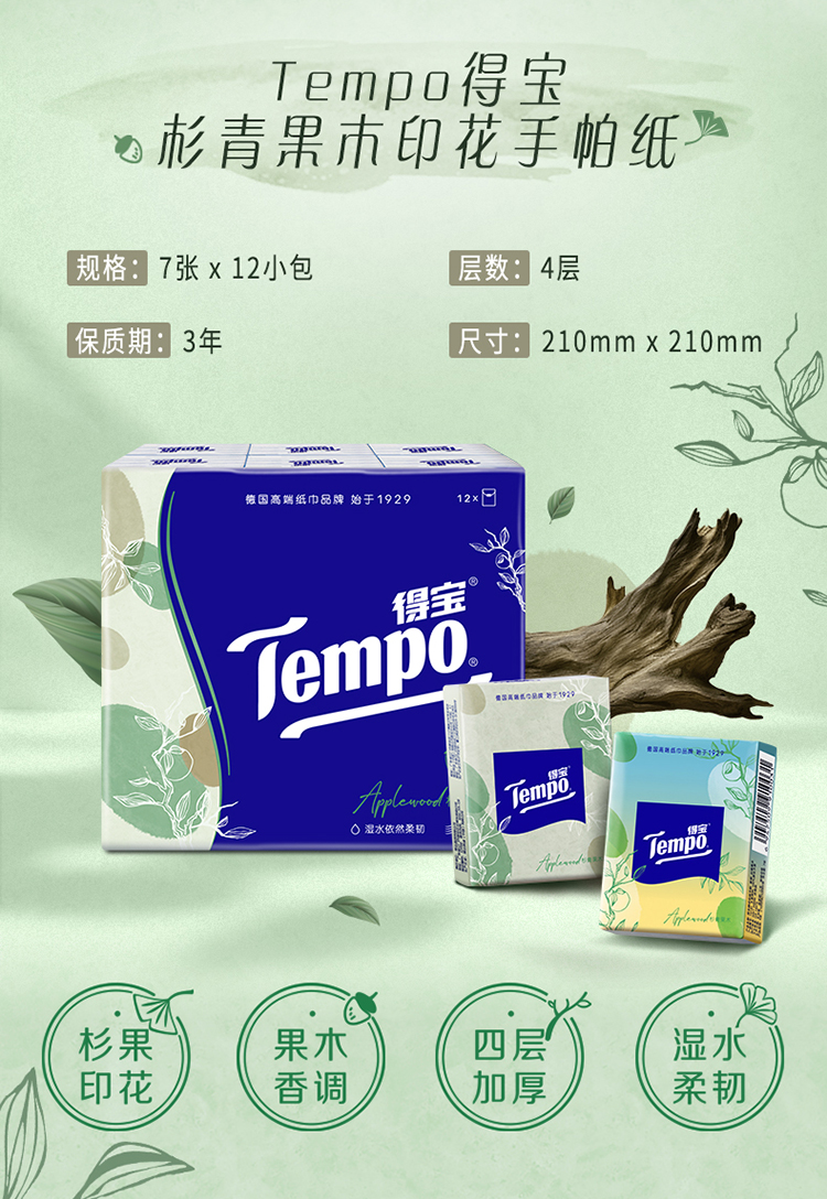 得宝(Tempo) 手帕纸果木味4层24包 纸巾小包便携装手帕纸餐巾纸