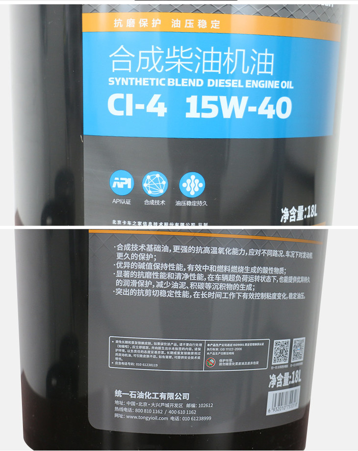 统一·卡车之家 柴机油 联合定制 CI -4 15W-40 18L 3万公里
