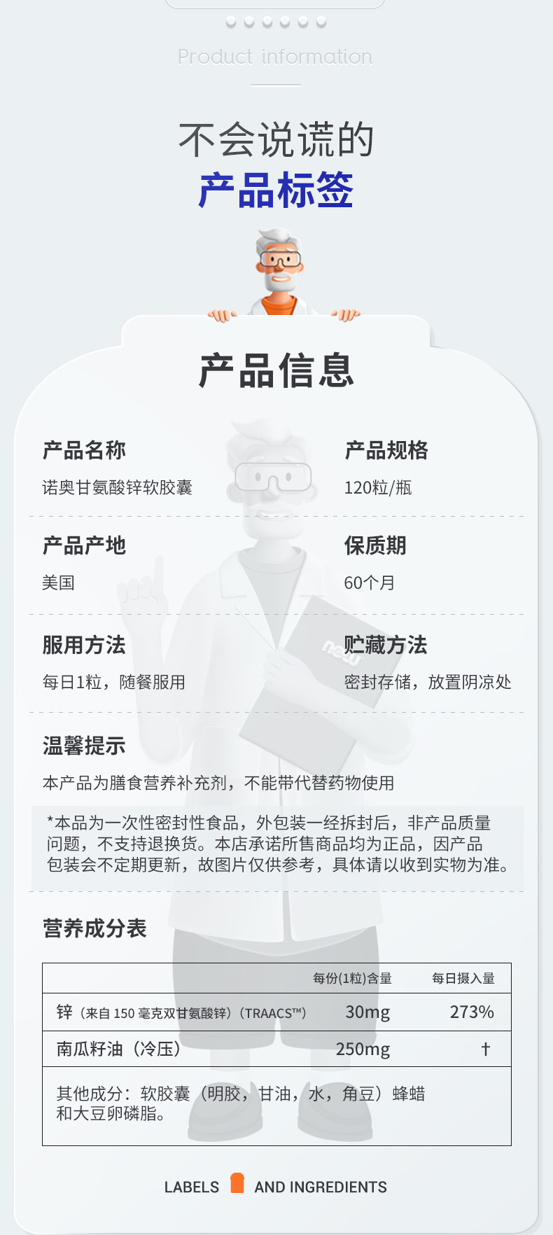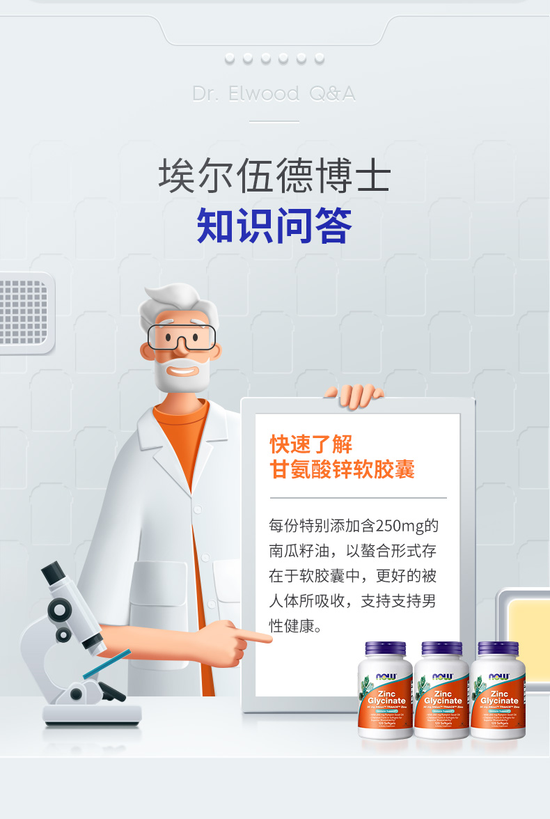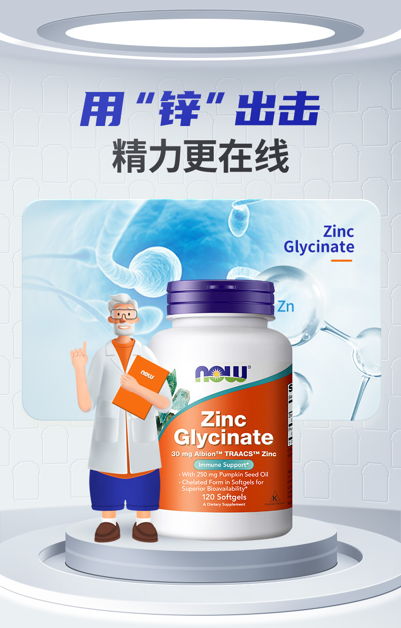 野兽优选|NOW诺奥甘氨酸锌软胶囊 120粒/瓶(跨境海淘商品不支持7天无理由退换)
