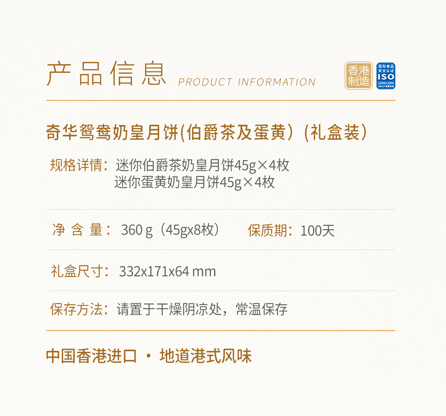 【鸳鸯奶皇月饼礼盒】伯爵茶奶皇及蛋黄奶皇 中秋送礼奇华饼家中国香港进口