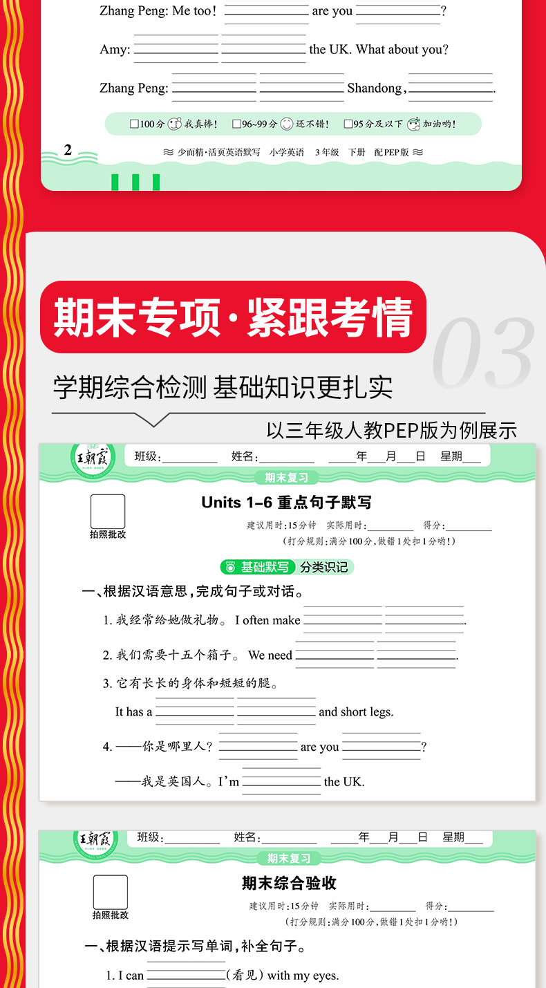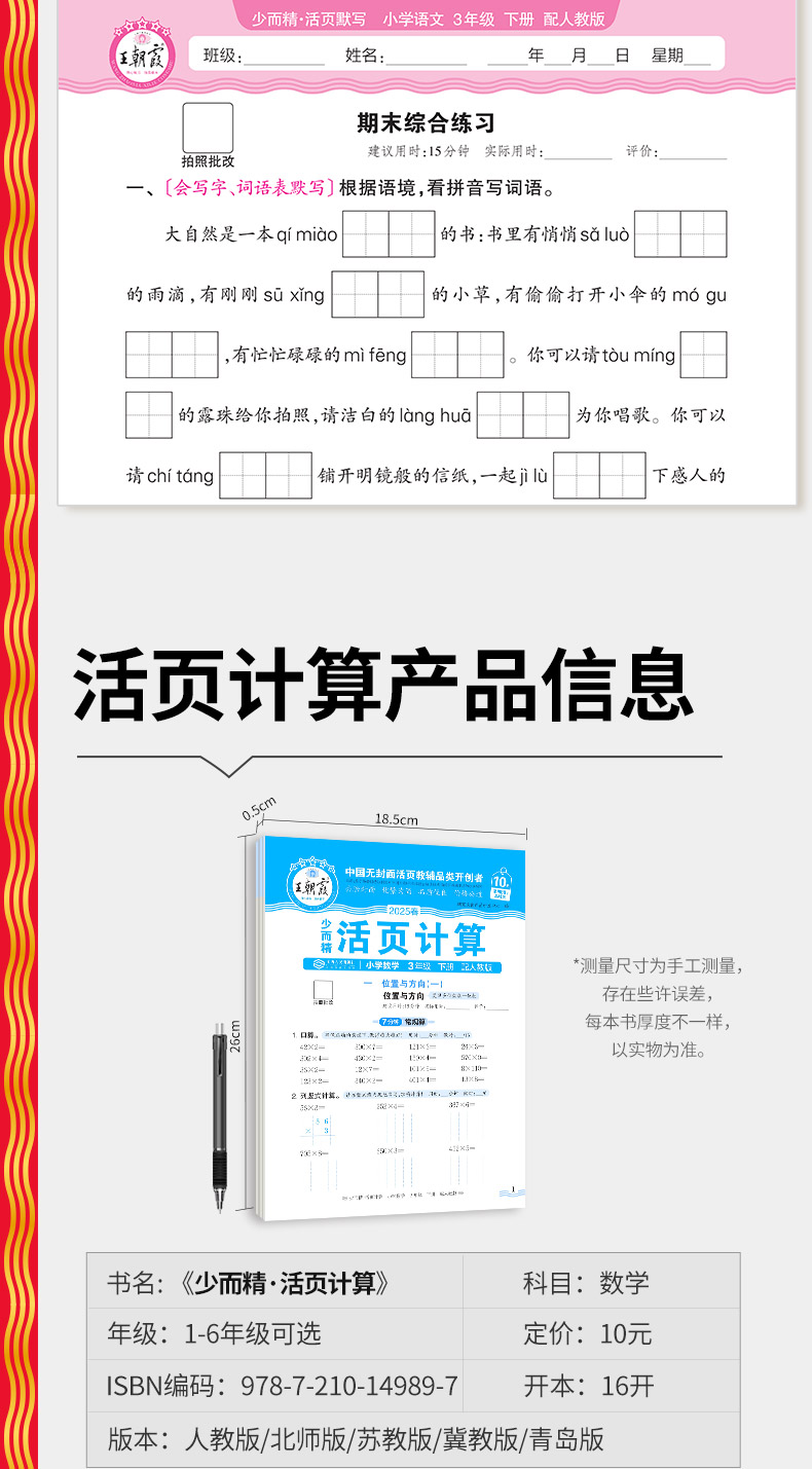 2025春语文活页默写/数学活页计算/英语活页默写 1-6年级下册