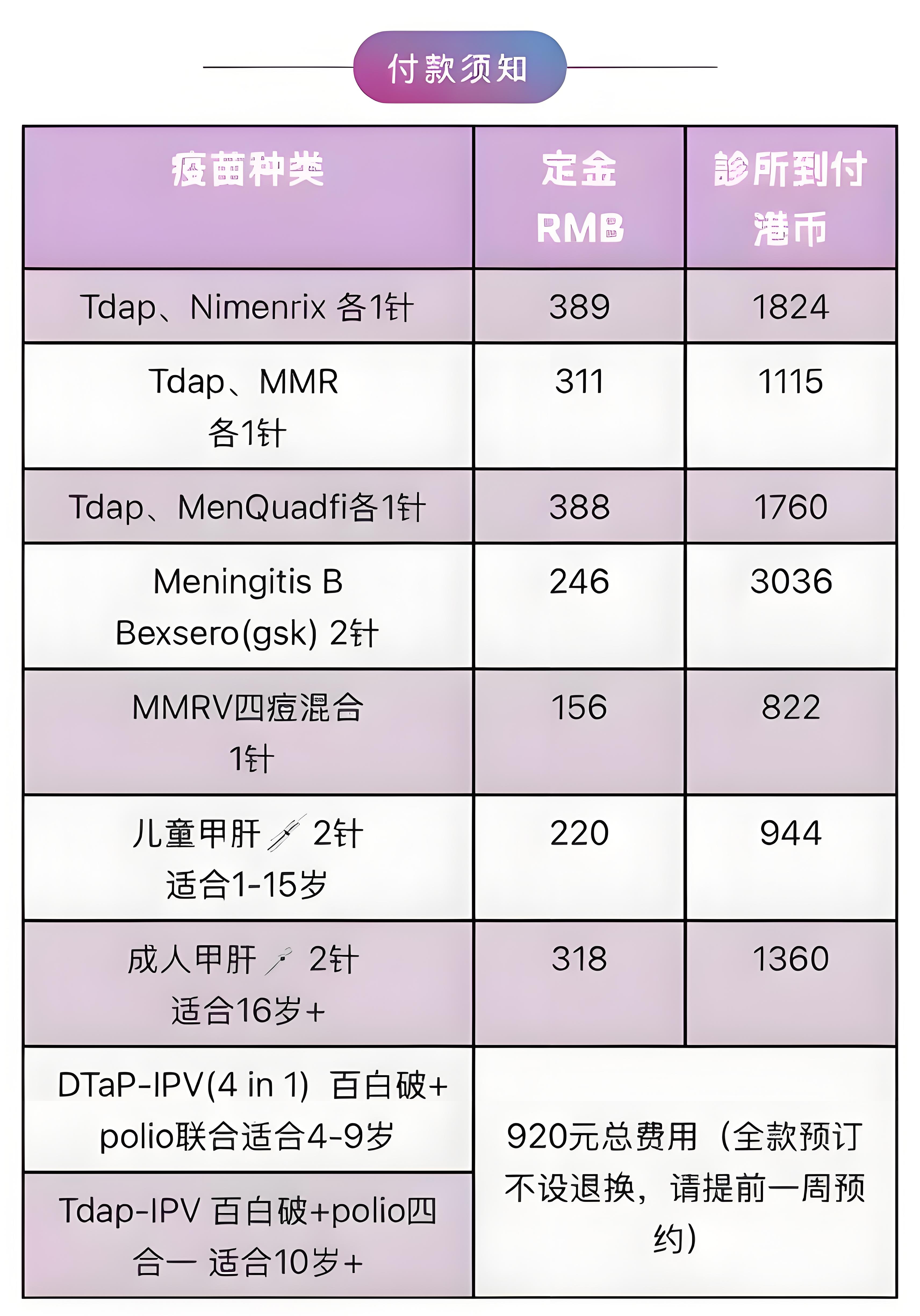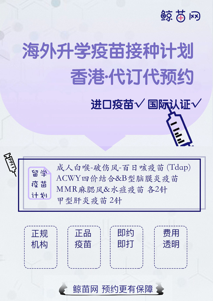 【香港·海外夏令營/美高/留學/升學💉套餐】Tdap&DTaP(破傷風-白喉-百日咳);polio脊灰;ACWY四價結合&B型腦膜炎;MMR麻腮風/水痘及甲肝等VAC代訂代預約服務 定金不退