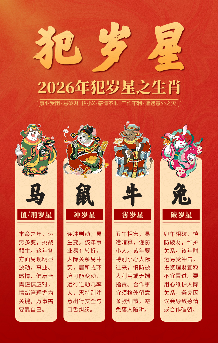 冲的有地域环境上的变迁,也或有工作事业上的变动,还或有财运感情上的变化等。在2026年受冲、必有动向,尤其人际关系波动很大。