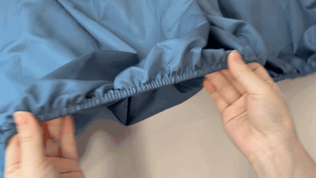 它的四周是一圈弹力超级足的松紧带,一个人操作也能轻松套上。