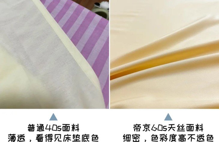 //因为关于床品的选择还有一个很重要的点:面料的支数,支数越大,面料越细,织出来的布也会更加舒适耐睡。