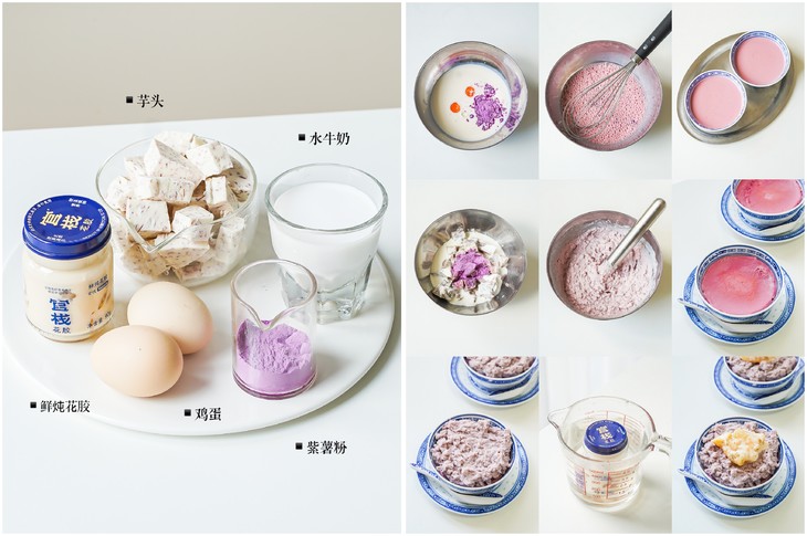 ❹芋泥花胶紫薯炖奶