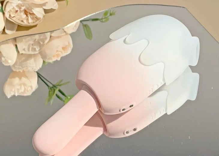 雪糕“糕体”是梦幻渐变粉白,“棒身”是嫩嫩的蜜桃粉,雪糕顶上还有半透明的白色软罩,似乎是模拟雪糕融化后向下滴落的造型。真的是少女心爆棚,太梦幻了,想被人发现都很难,尴尬什么的根本就不存在。