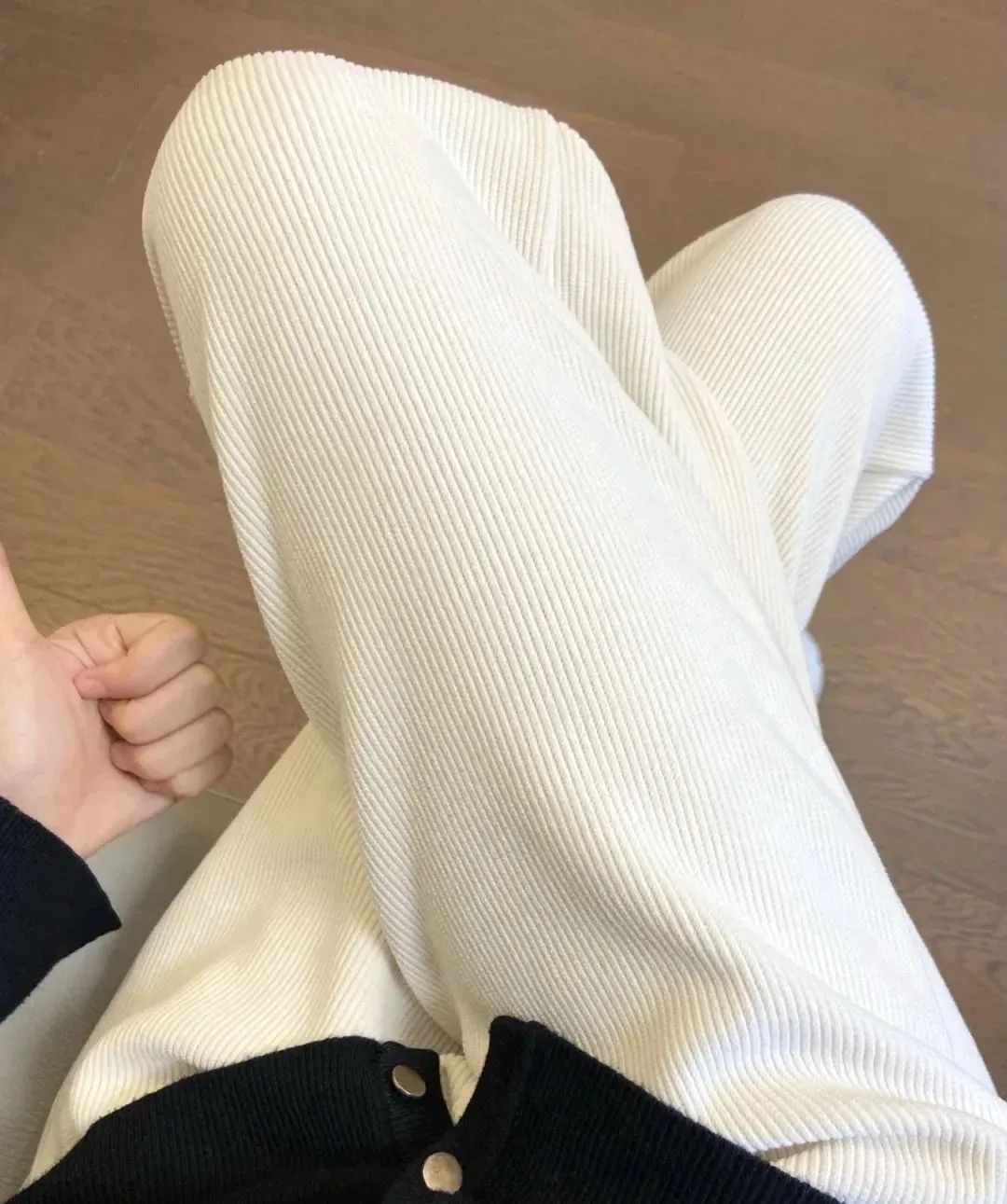 家里黑色裤子多的朋友,也可以尝试下米白色,它更显温柔,特别优雅乖巧