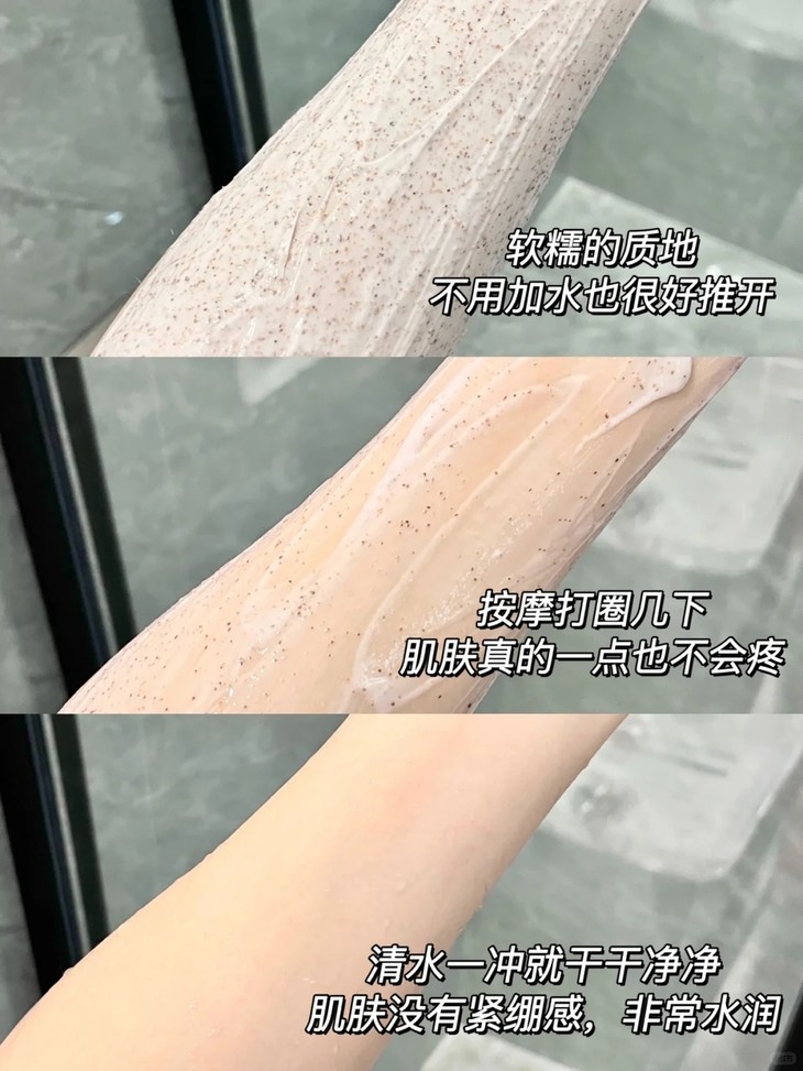 ✔磨砂+清洁+保湿的结合一步搞定三个步骤