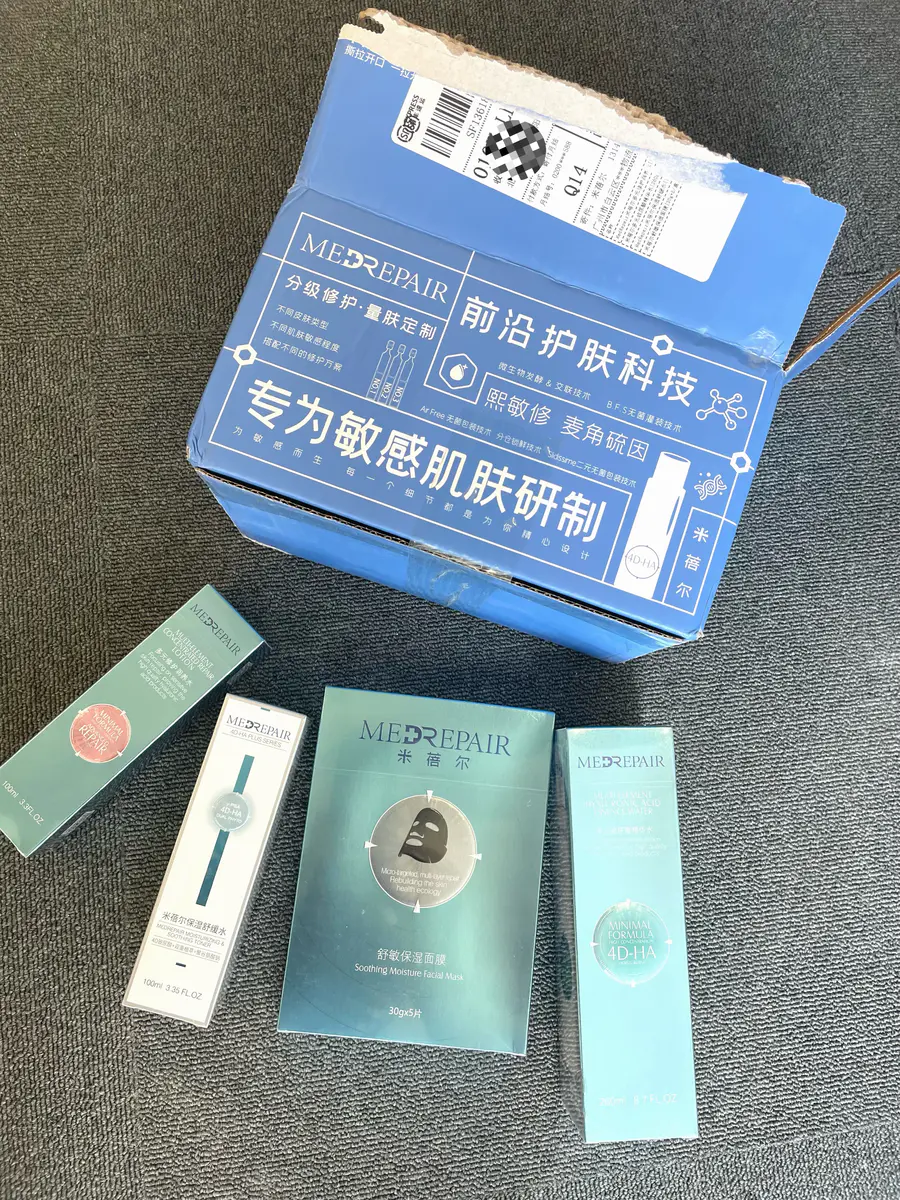 不适,用米蓓尔的产品准能缓解,之前还被同事安利了多元玻尿酸精华水和多元修护润养水,这次也一起买回来啦~我今晚回去就用用~对了,包装箱实在做的太用心了,看上去就非常洋气,哈哈~