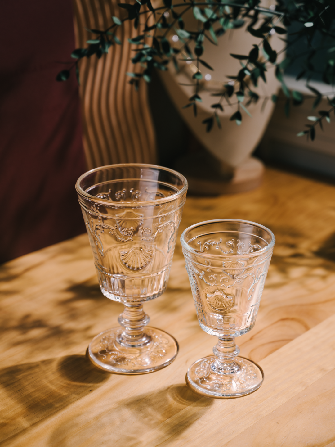 这个系列的灵感就来自于巴黎凡尔赛宫 。既还原了巴洛克的优雅大气,宫廷里华丽的贝壳、花饰、藤蔓的细节也呈现得淋漓尽致,连杯脚都做了装饰。