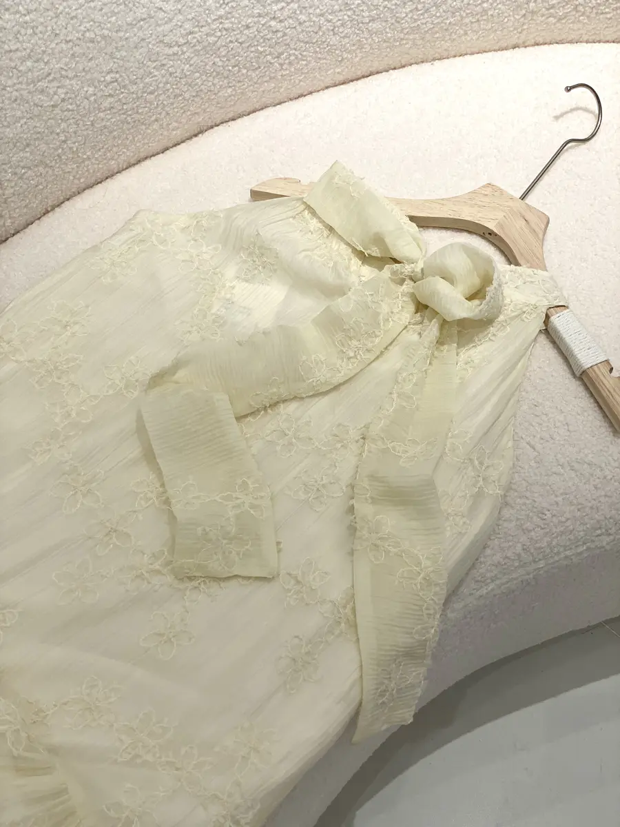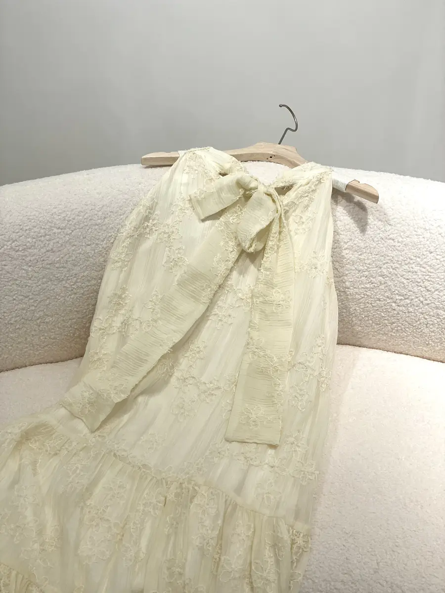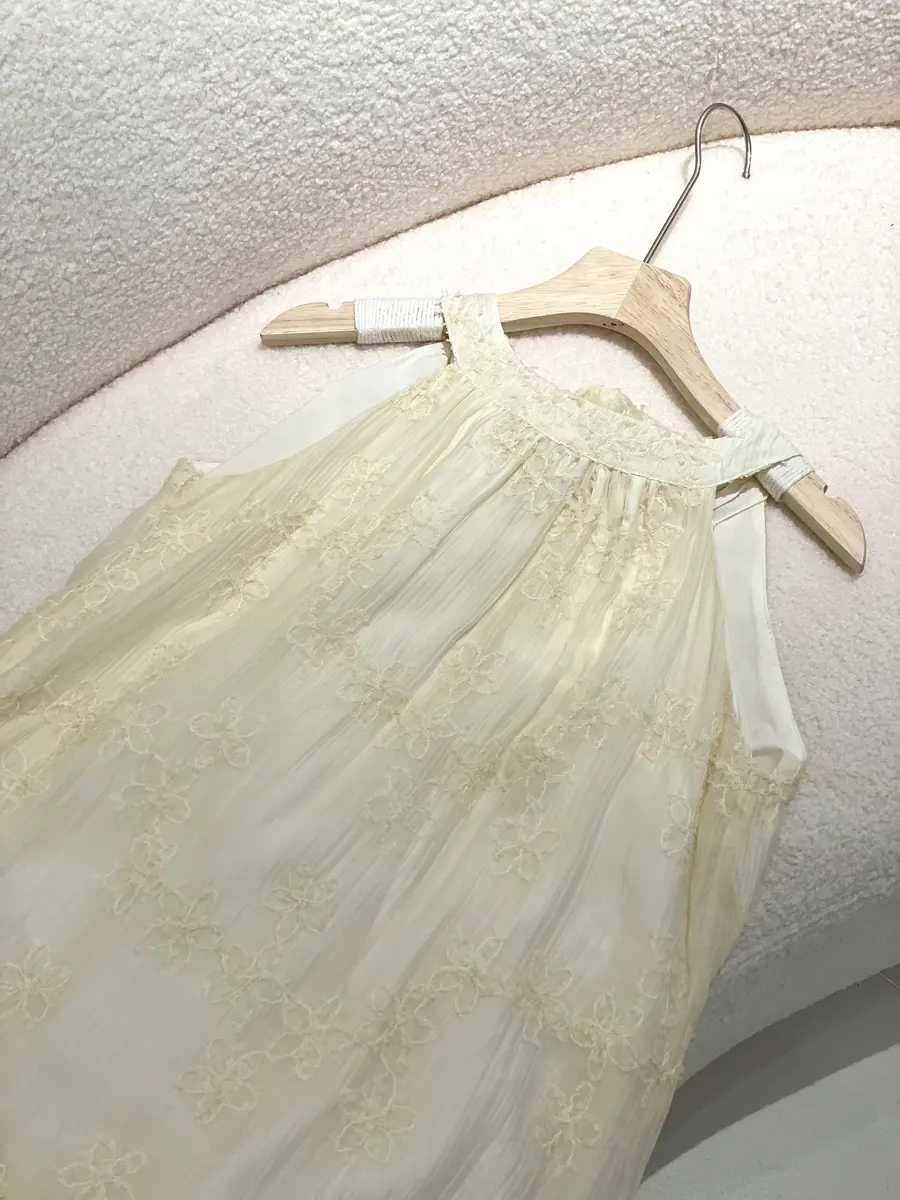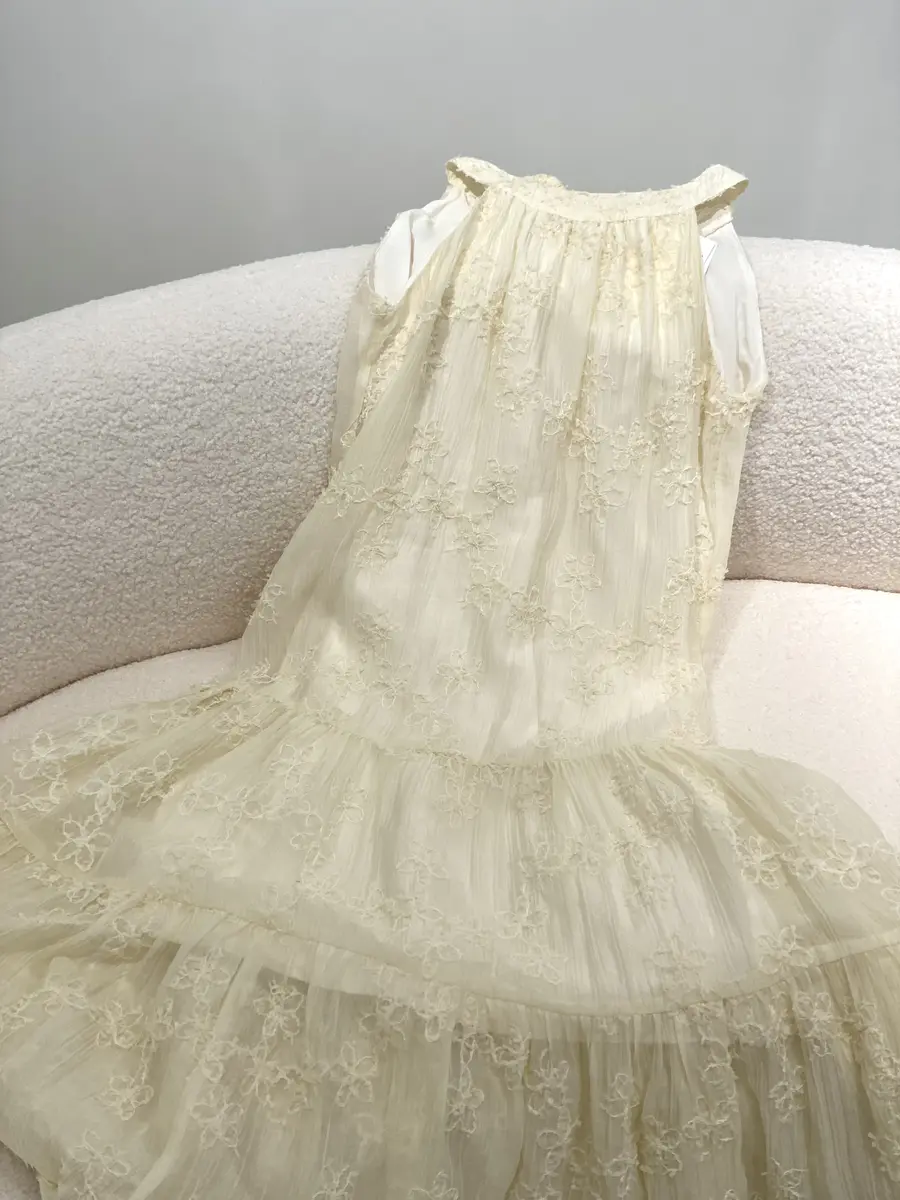 优雅绣花挂脖裙实拍