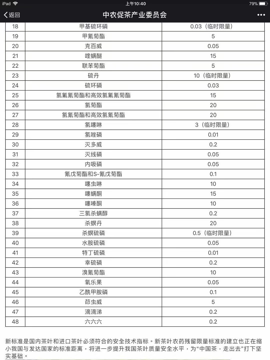 目前国家针对茶叶的容许范围如上二张、只查验48项