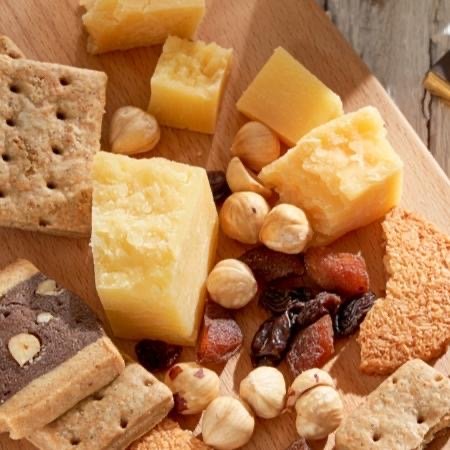 奶酪配果干是最常见的搭配,如无花果干、杏干等。一口奶酪,三五果干,同时放入口中,细细咀嚼,果干的自然清新混合奶酪的成熟饱满,咸香与甘甜共存,开启奇妙美味体验。