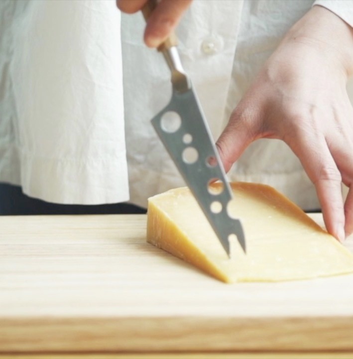 注意,为了使奶酪保持原有风味,每切完一种奶酪,都需要将刀清洗干净。