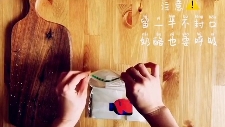 第一步,将不可食用的Ouroland有机奶酪表皮切除后再食用。