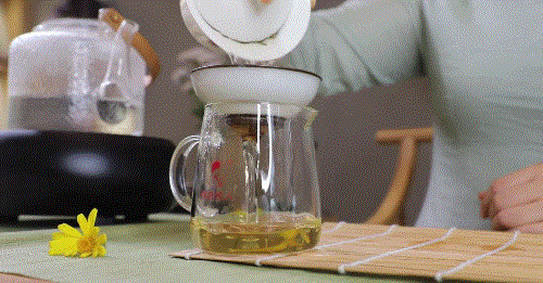 将茶汤从公道杯中分入品茗杯中,即可品饮。