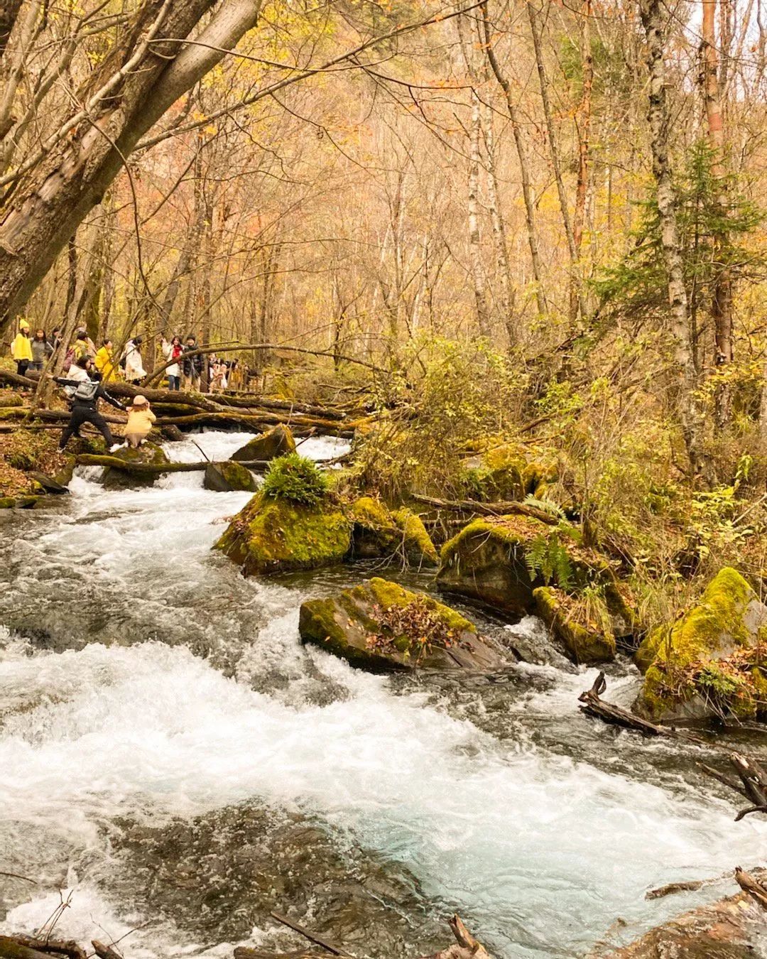 小九寨松坪沟的美真的震撼到我。晶莹剔透的各色海子散落在彩林间,映衬着树木的倒影,忽然间就有种不真实感,仿佛置身于彩色油画之中。