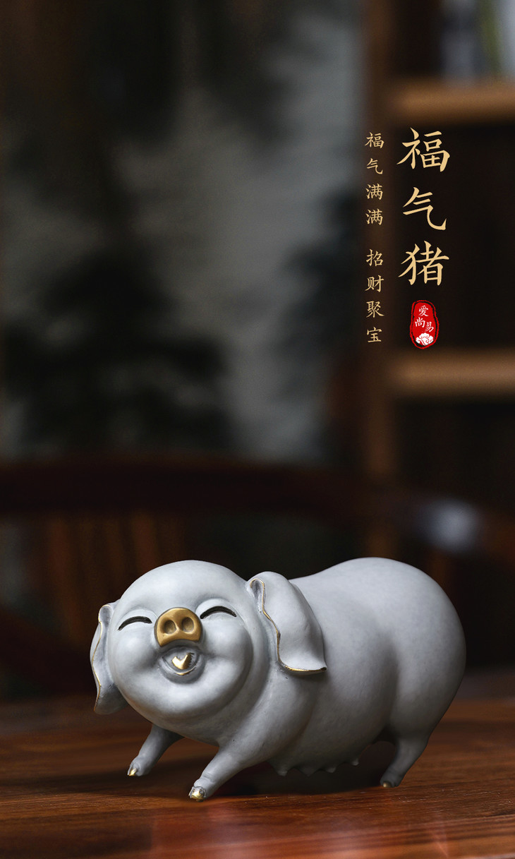 猪摆件憨态可掬,让人看起来就非常的开心,福气满满,招财聚财,猪有这么多美好的寓意,可以考虑请一尊带回家中哦~