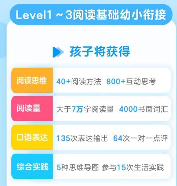 上面是阅读力分级体系,孩子通过阅读力课程的科学培养,可以获得相应的阅读力。