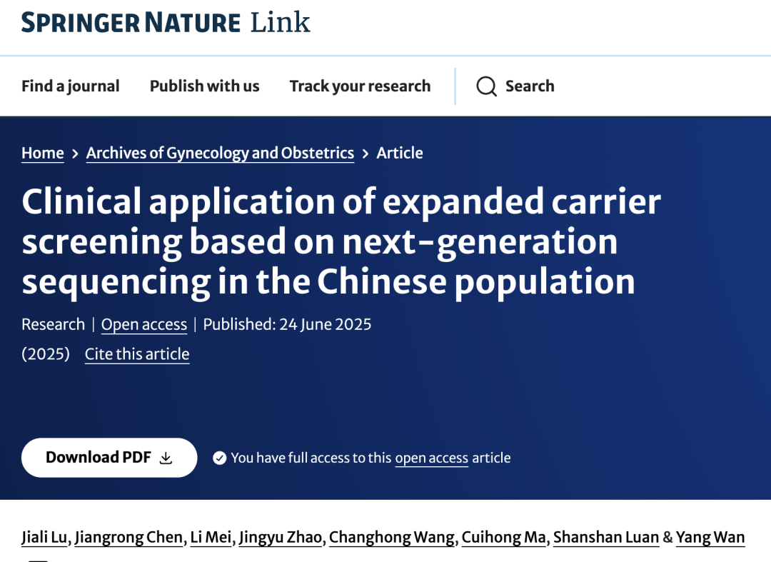 这一权威推荐与前沿科学研究高度契合。近期,阜阳市人民医院联合华大基因团队在国际期刊《Archives of Gynecology and Obstetrics》上发表了一项重要研究,评估了扩展性携带者筛查 (Expanded Carrier Screening, ECS) 在中国安徽地区育龄人群中的应用价值,研究揭示了本地区高携带率的单基因病谱,并为临床实践提供了重要参考和关键依据。本文将为您深入解读这项研究的核心发现及其对中国家庭出生缺陷防控的现实意义。