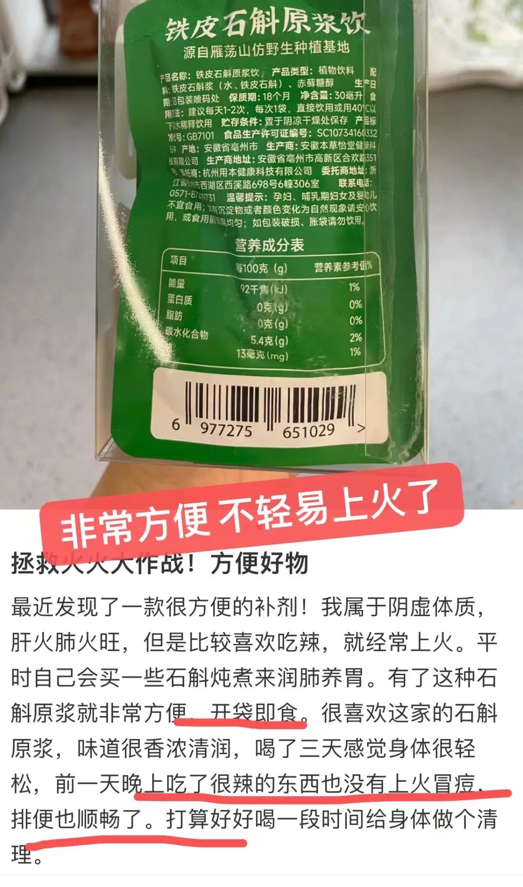 但石斛煮水要2小时,鲜条有季节性还不好买!想get有名人士同款保养妙方,可以试试这款「用本铁皮石斛原浆饮」,铁皮石斛萃取成液体,小分子更易吸收,轻松养生!