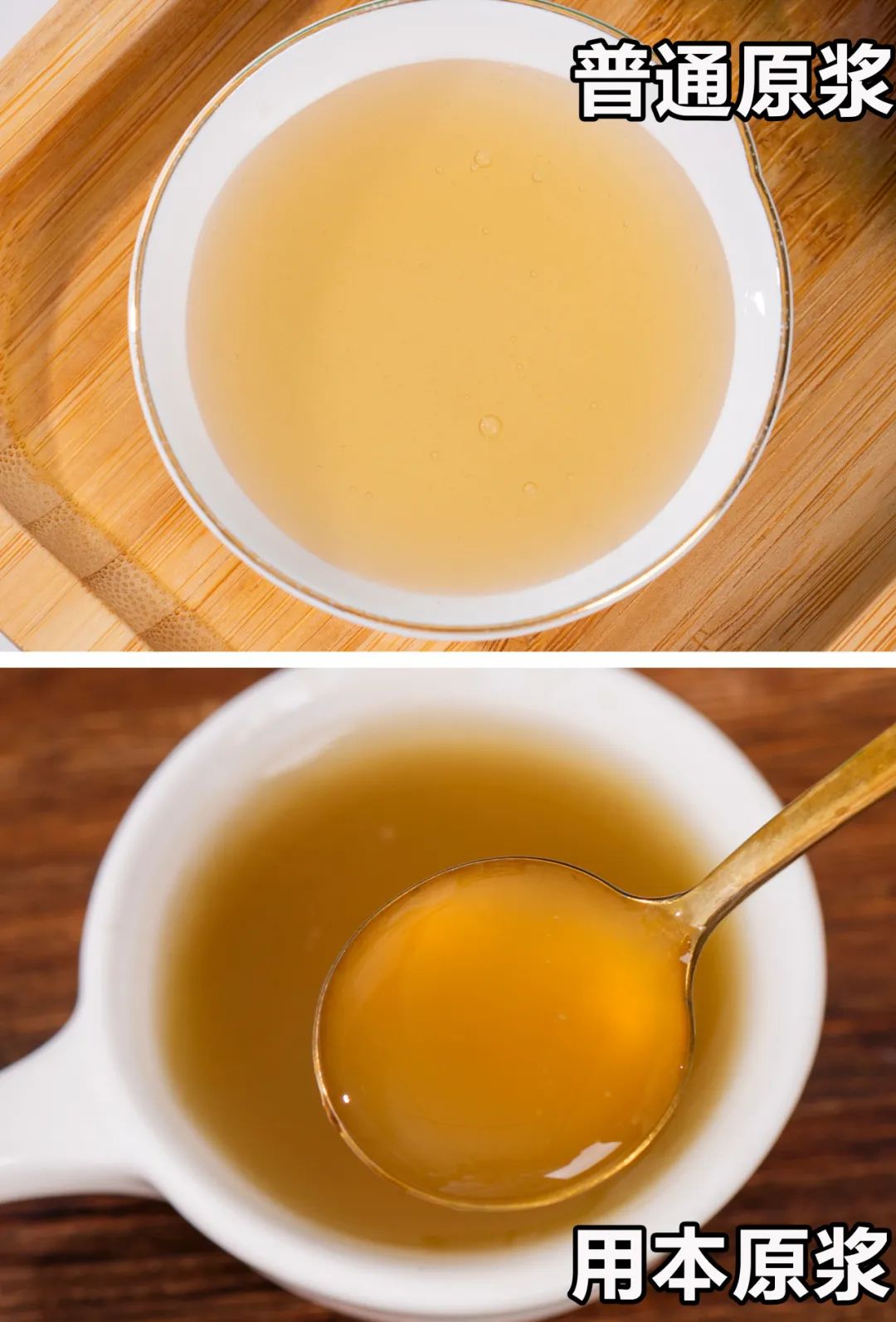 看看与普通石斛原浆的对比就能看出品质:普通的色泽很淡如同稀水,这款原浆色泽深且浓稠!