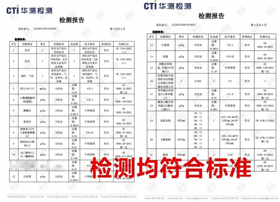 当然,入口的产品不随便,多项指标通过质重量监督检测中心检测全通过。