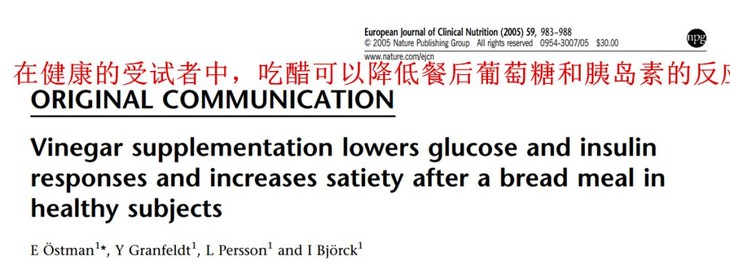 如果把身体里面的双糖酶比作是勤劳的小工人,那我们给点醋,它就会觉得很酸软,不想动弹,没事摸摸鱼,慢慢分解葡萄糖,血糖波动自然会小一些。