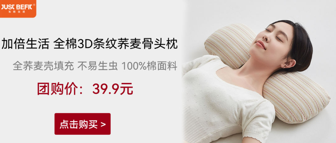 现在,全棉3D条纹荞麦骨头枕只要¥39.9!