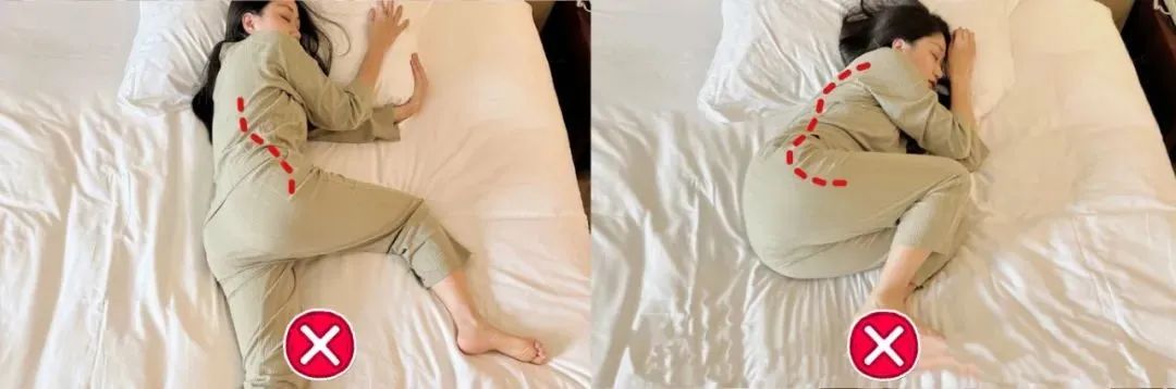 侧睡时,只有一侧的臀部和肩膀接触到床,可能会压迫脊柱向侧面弯曲、对脊柱和韧带造成压力。