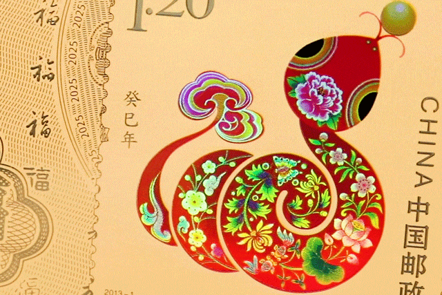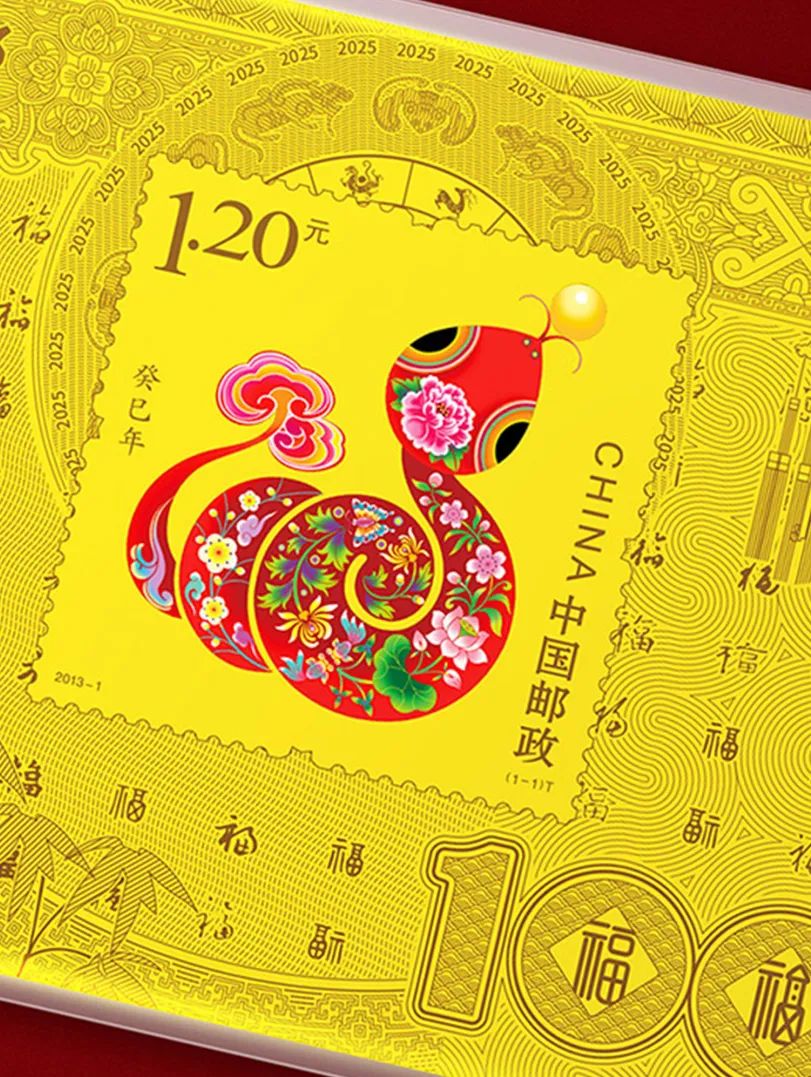 中国集邮官方以2013年蛇邮票为主题的邮票,精心打造了一枚《百福金钞》,承载了人们对新的一年美好期望和祝福