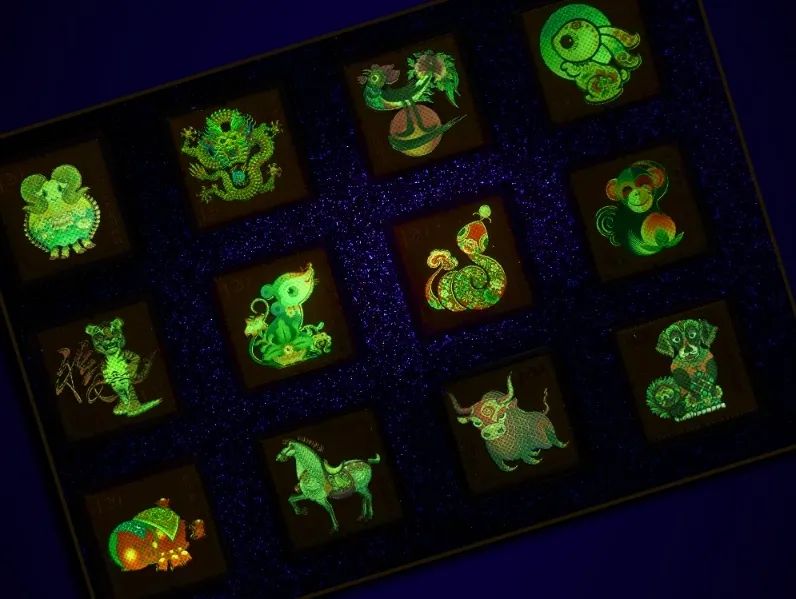 在荧光油墨工艺被紫光灯照射下,美轮美奂,熠熠生辉!