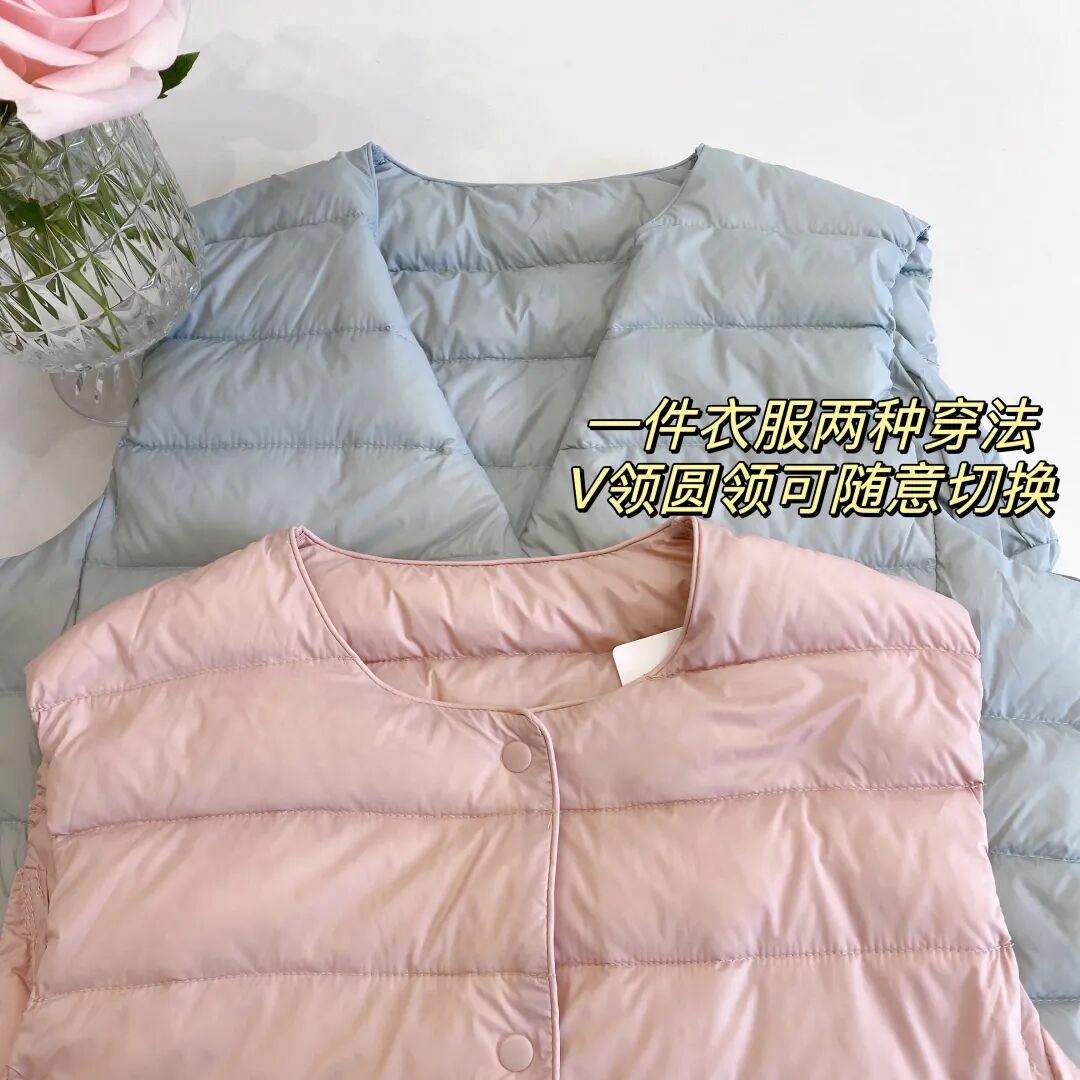 注意这是轻薄型羽绒马甲,在仓库一直压着,大家收到的时候会扁扁的,拿出来拍打一下挂起来,用吹风机吹一吹,就马上蓬松了哈…