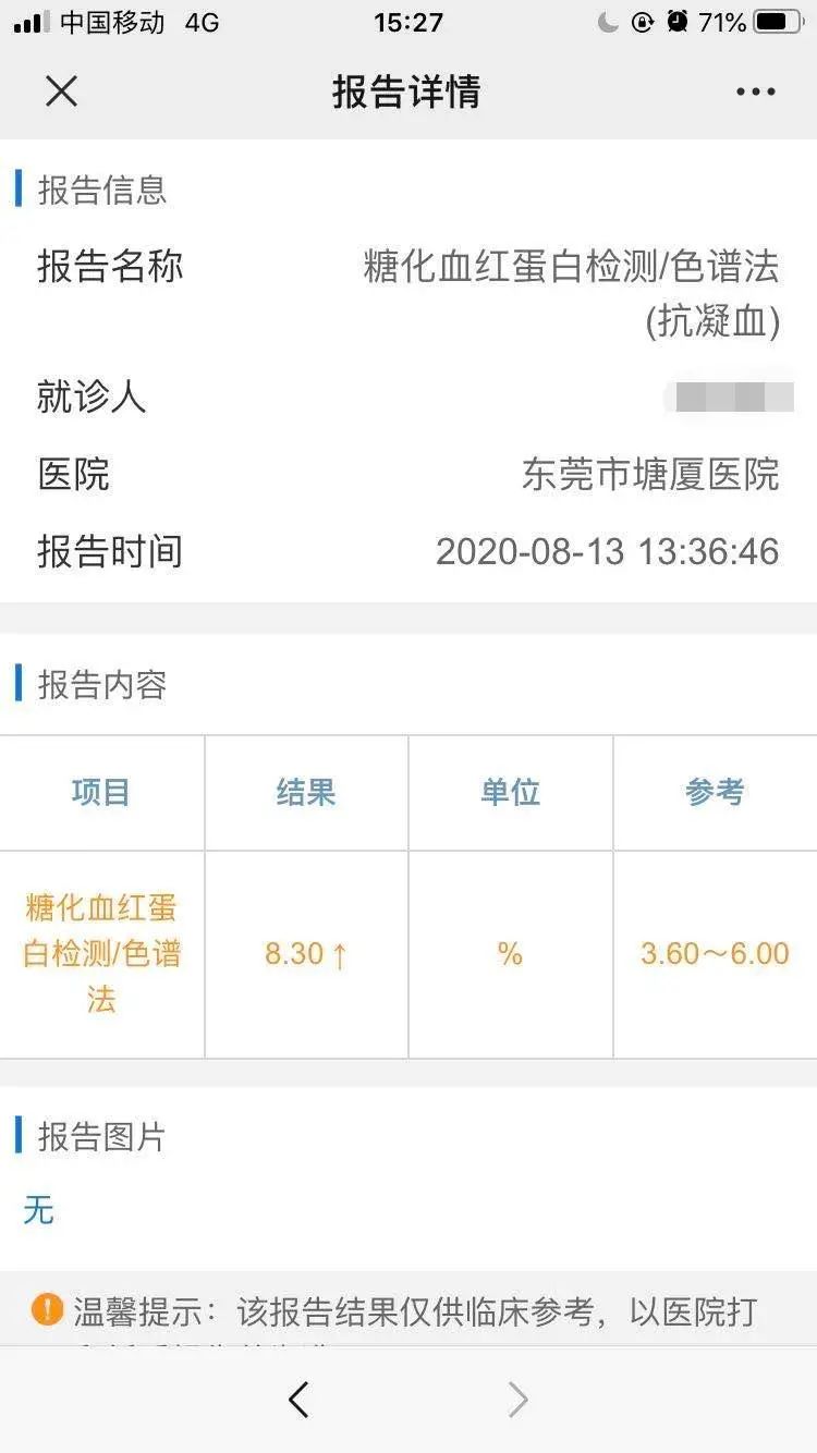 我把自己的症状和医生说了后,医生想了想,要我测一下血糖,结果血糖仪直接没显示数字。医生吓了一跳,说你这爆表了,仪器超过30点就显示不出来,你快去医院测一下。