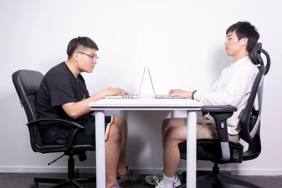 *左为普通办公椅,右为永艺蒙柯人体工学椅