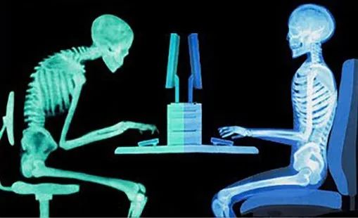 *右为坐人体工学椅 脊椎状态示意图