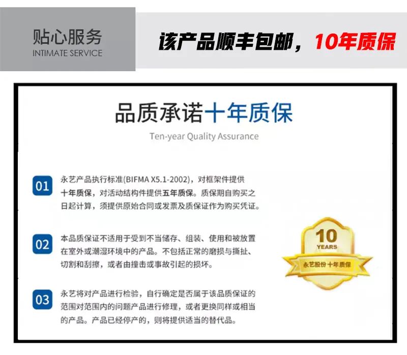 5、顺丰包邮,10年质保,永艺椅就代表放心!