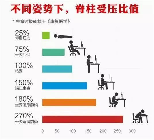 当我们坐得笔直时脊椎会被拉紧,连带脊椎周围肌肉和韧带紧张。人就像拉满的弓,时间久了肯定腰肌劳损。
