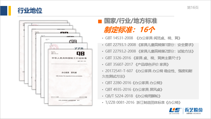 我国关于坐具、办公椅的国家、行业、地方标准,永艺参与起草的就有16个!