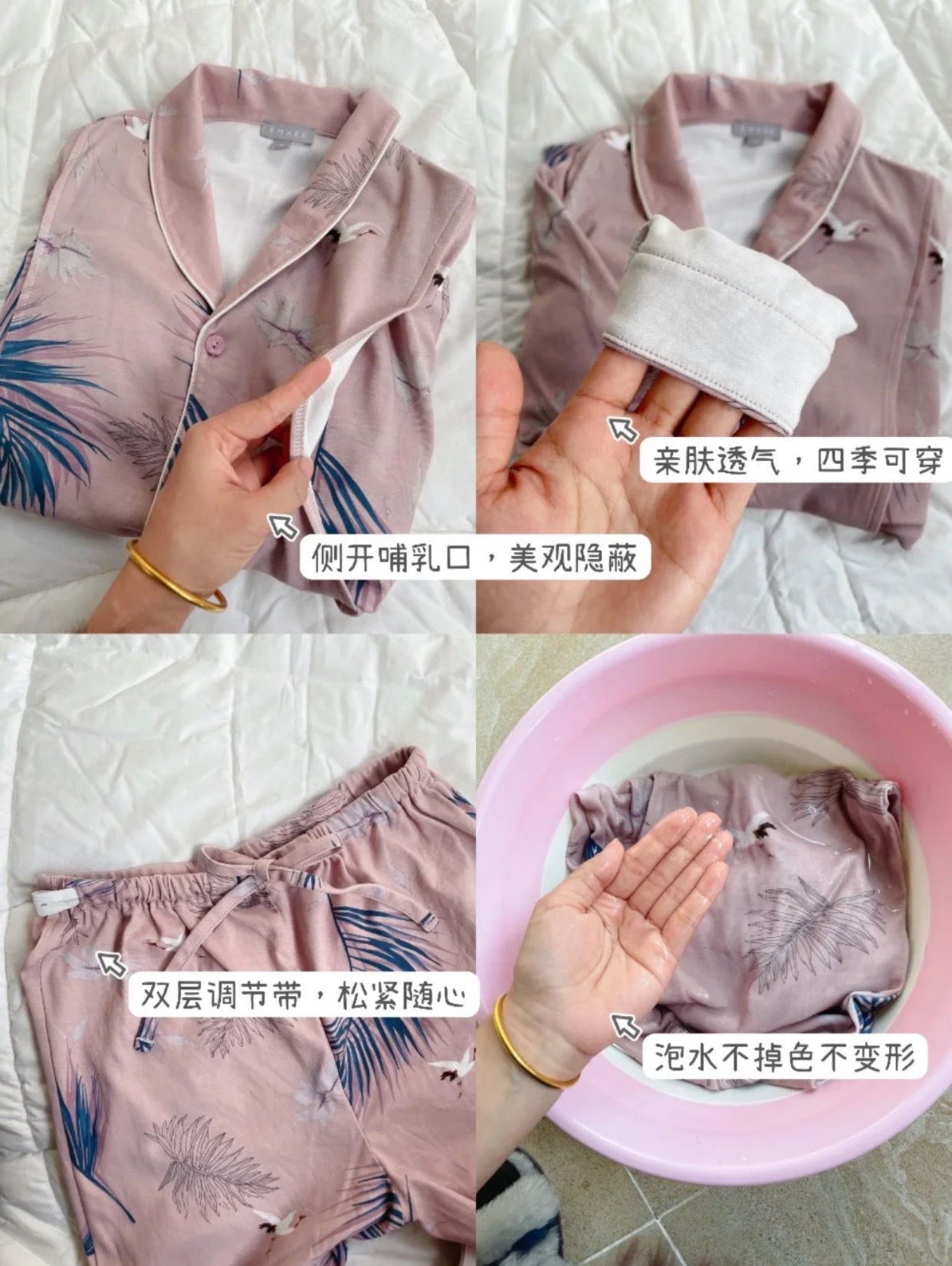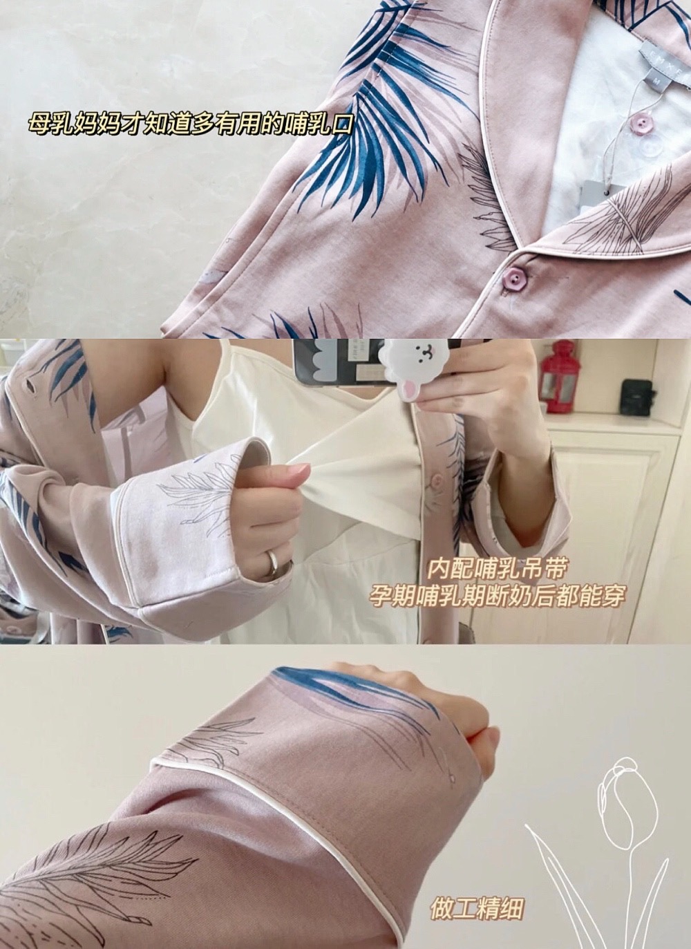 衣摆都比普通睡衣更长更宽松,避免新妈妈的腰腹部受凉。